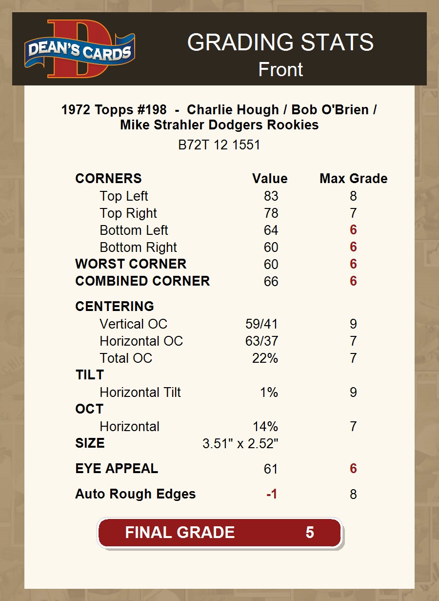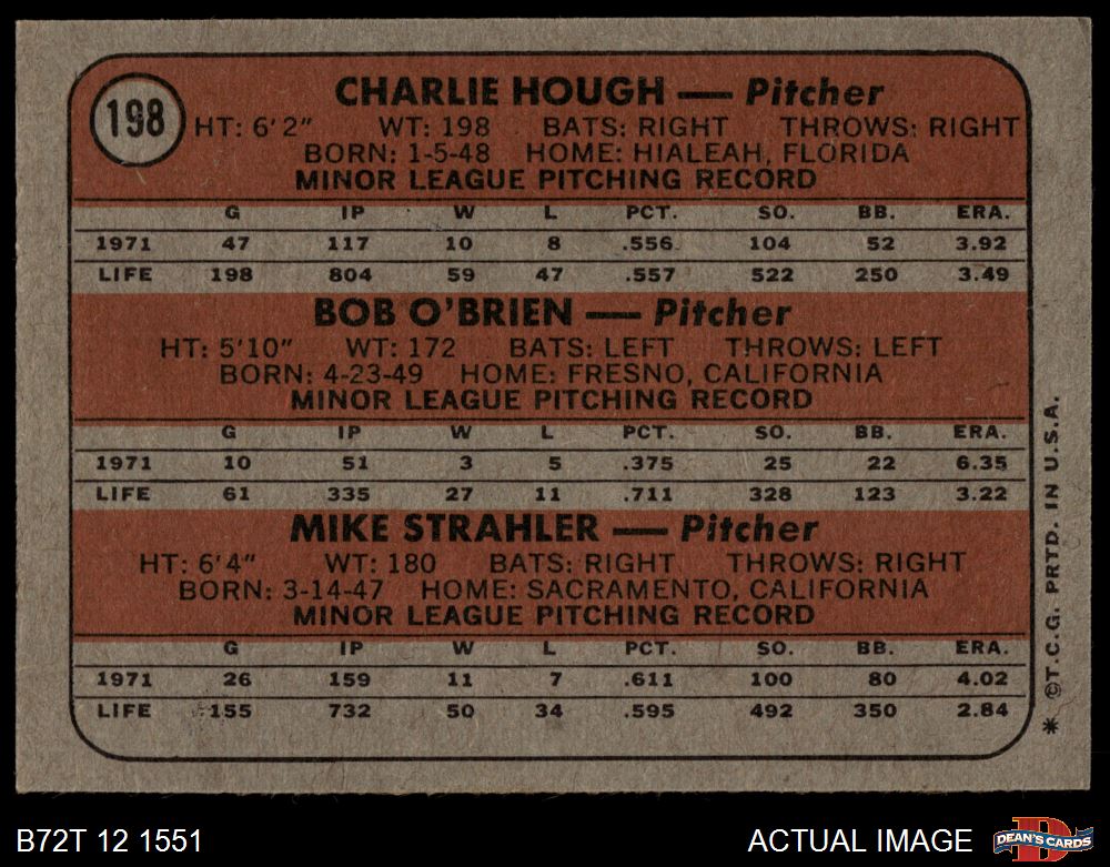 1972 Topps #198 - Charlie Hough / Bob O'Brien / Mike Strahler Dodgers Rookies 5 - EX
