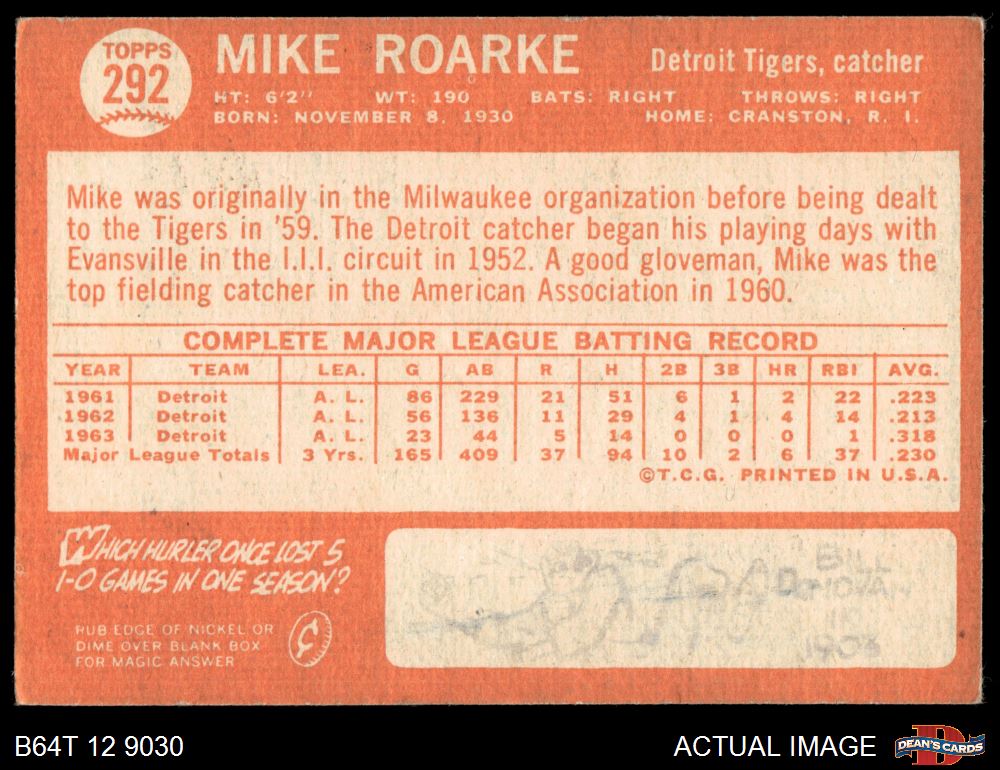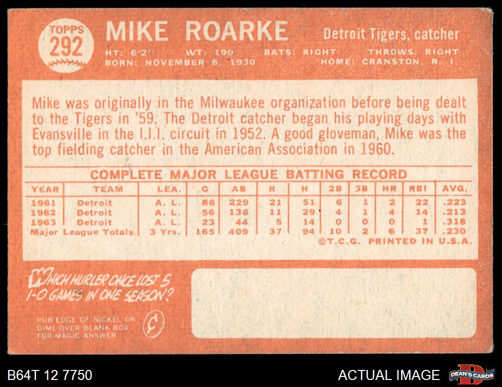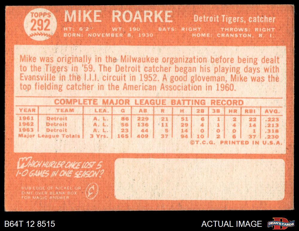 1964 Topps #292 Mike Roarke