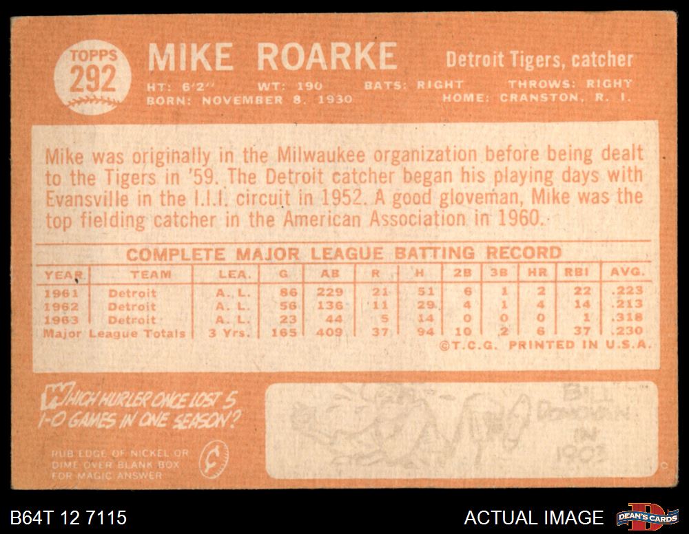 1964 Topps #292 Mike Roarke 2 - GOOD