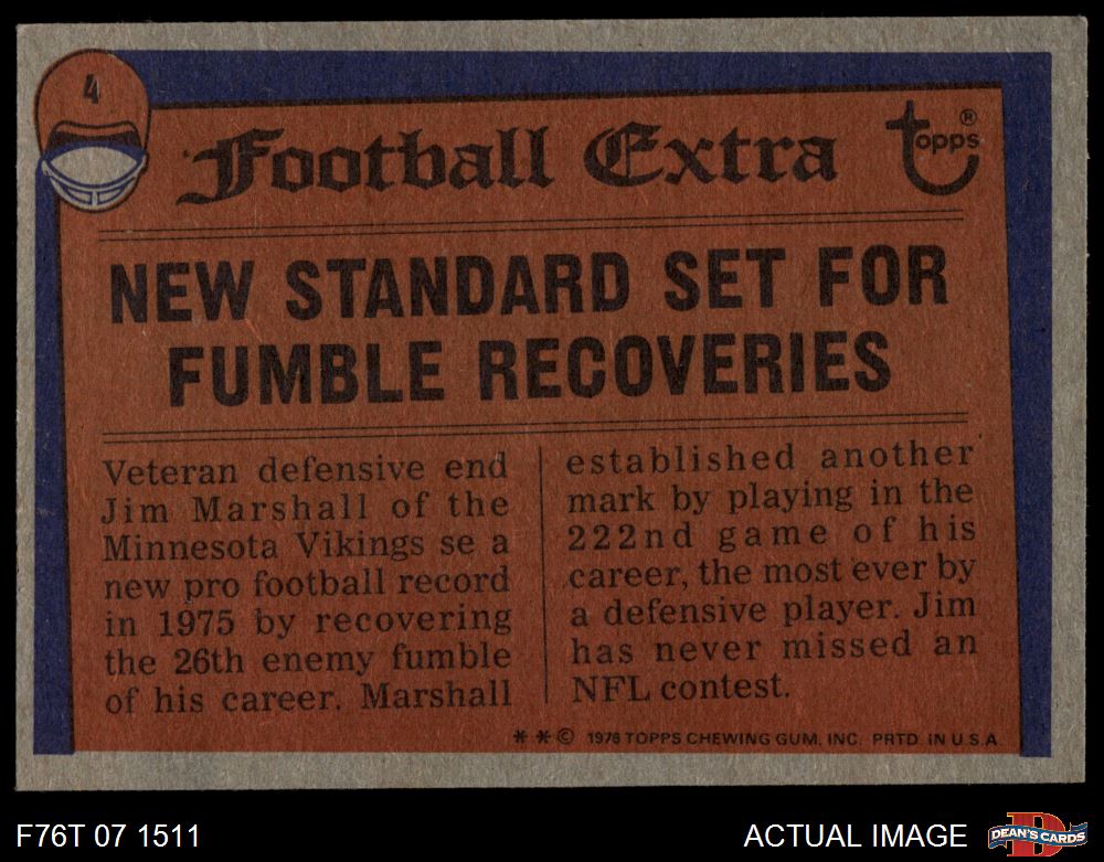 1976 Topps #4 - Jim Marshall Record Breaker 5 - EX