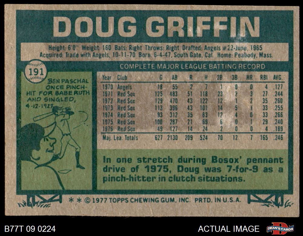 1977 Topps #191 Doug Griffin 3 - VG
