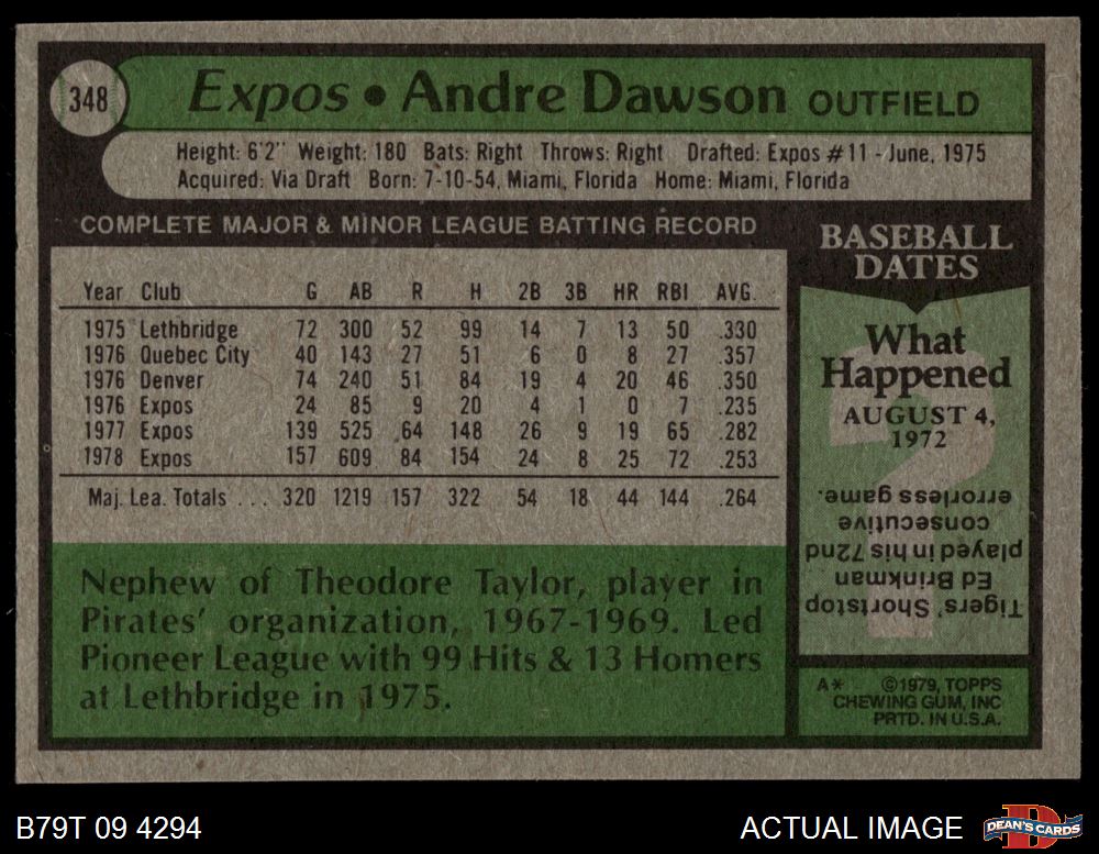 1979 Topps #348 Andre Dawson 4 - VG/EX