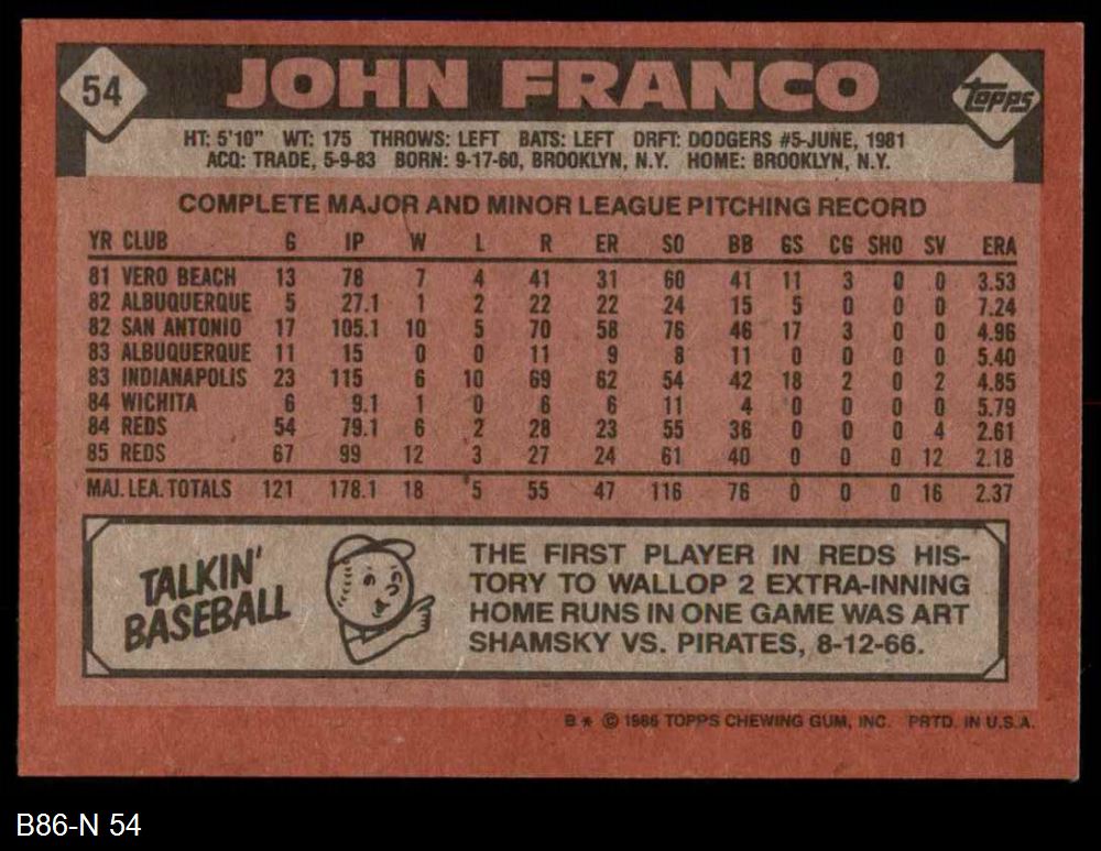 1986 Topps #54 John Franco