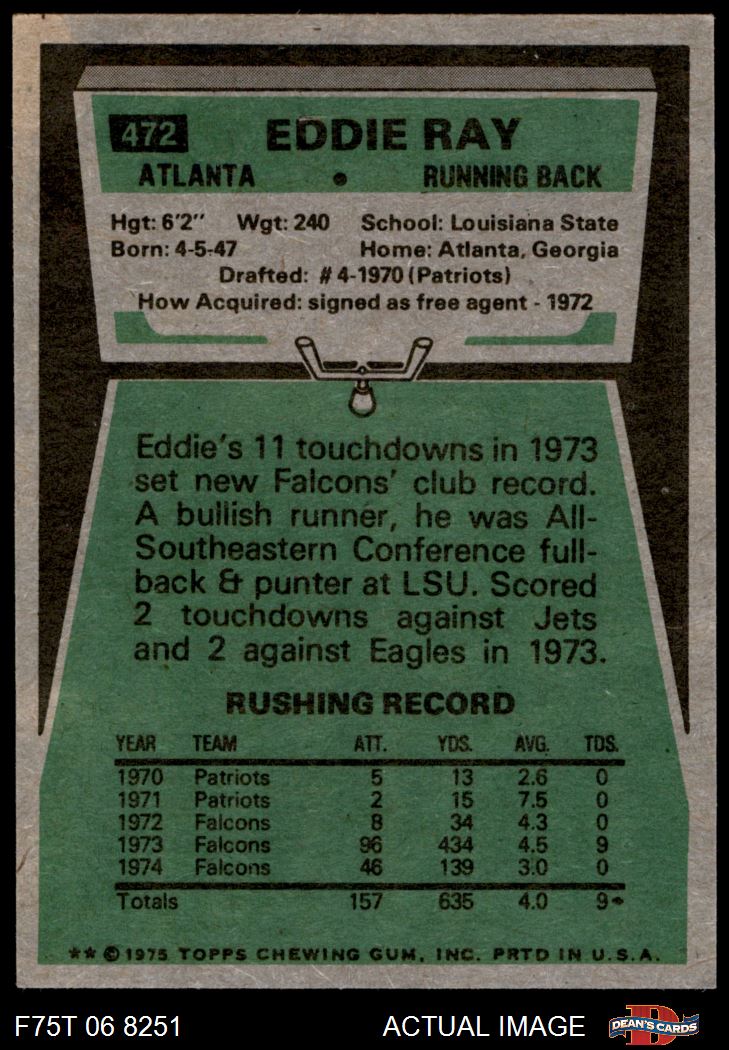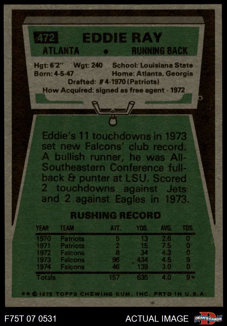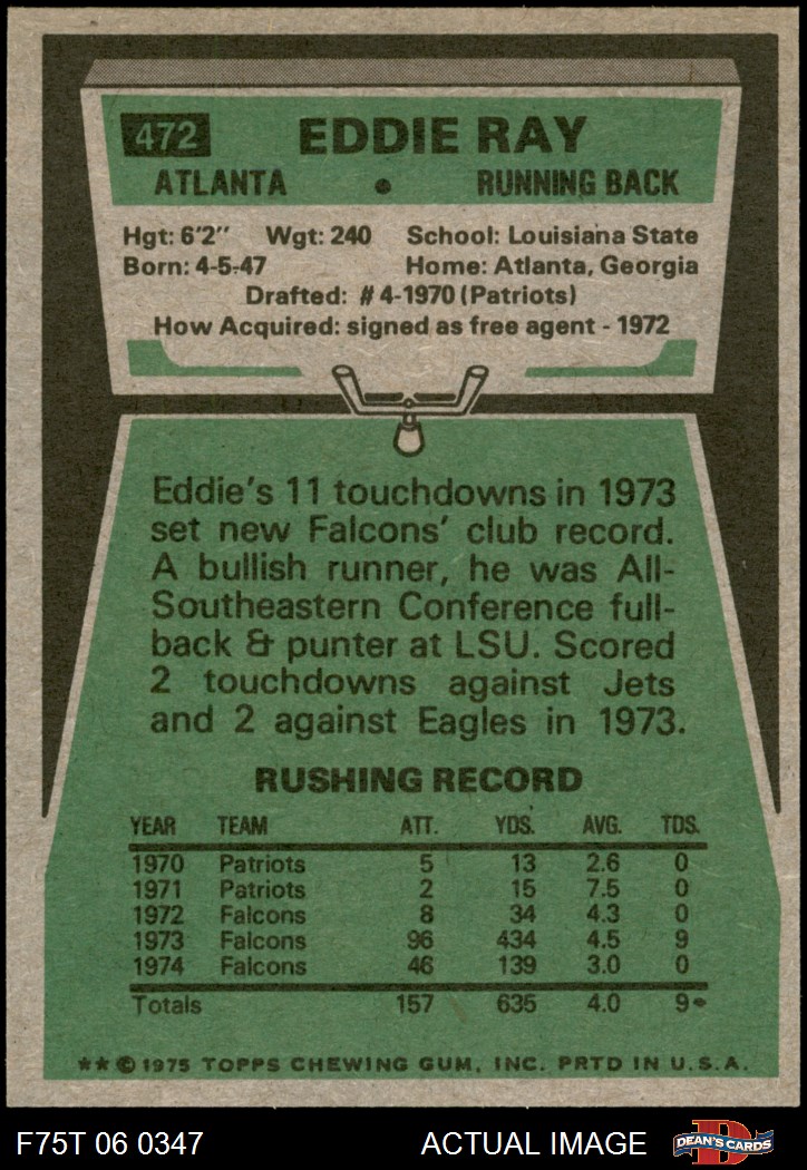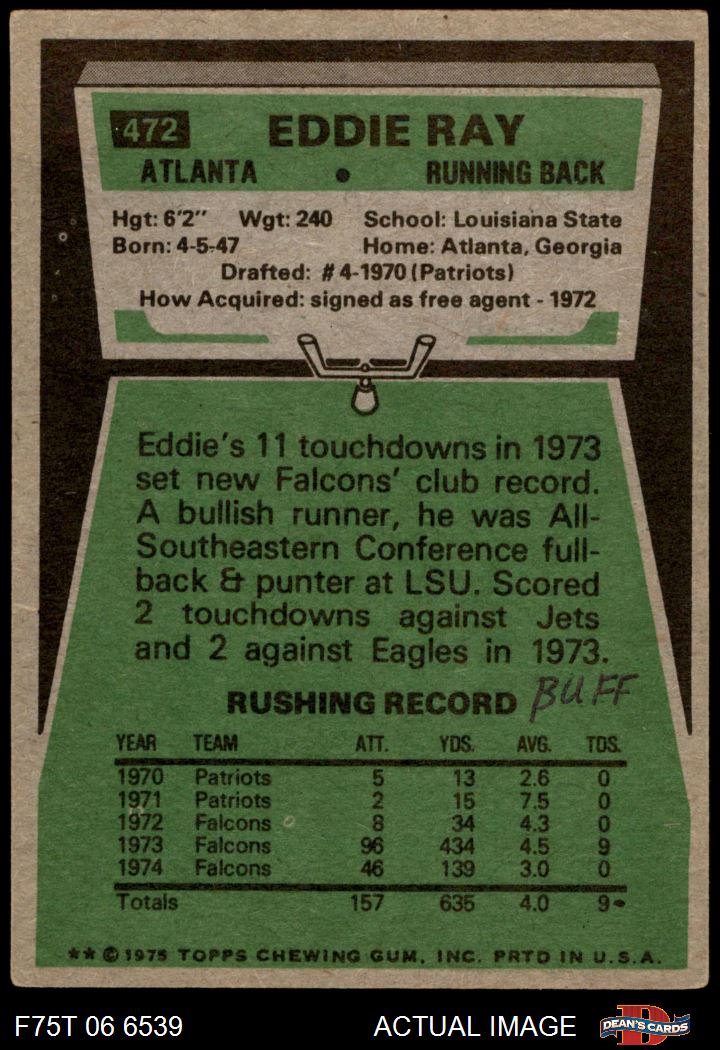 1975 Topps Football Cards (8,489 available)1975 Topps Falcons (405 available)