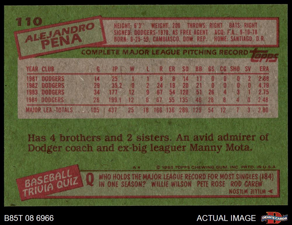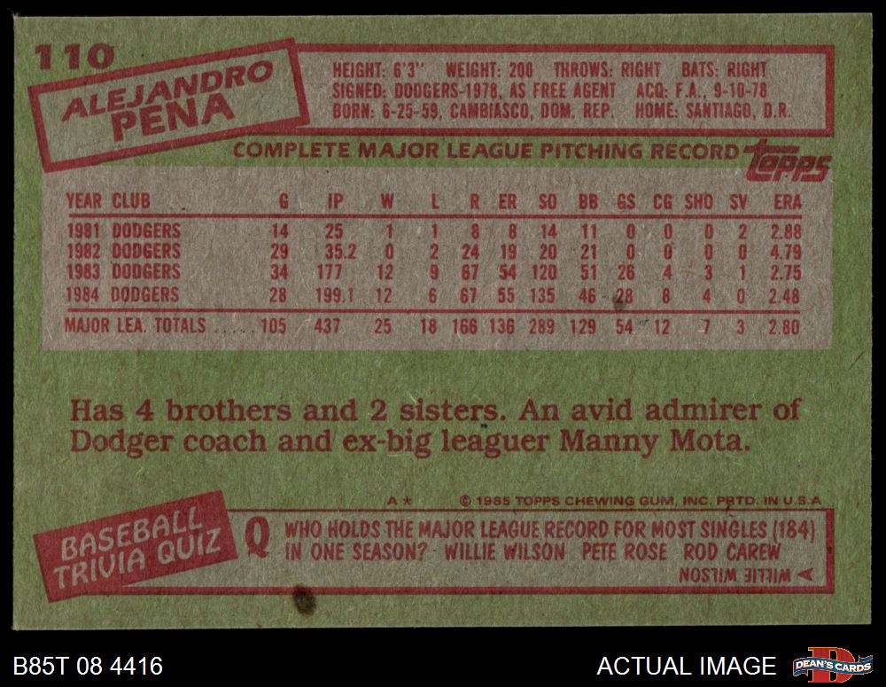 1985 Topps #110 Alejandro Pena