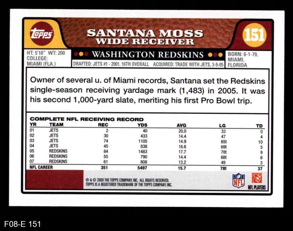 2008 Topps #151 Santana Moss