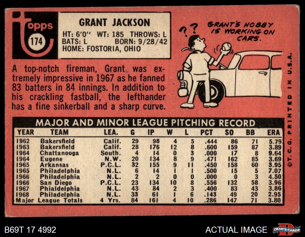1969 Topps #174 Grant Jackson 2 - GOOD