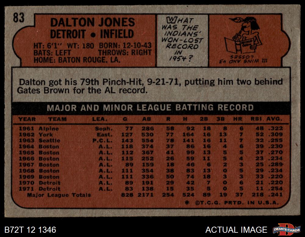 1972 Topps #83 Dalton Jones 3 - VG