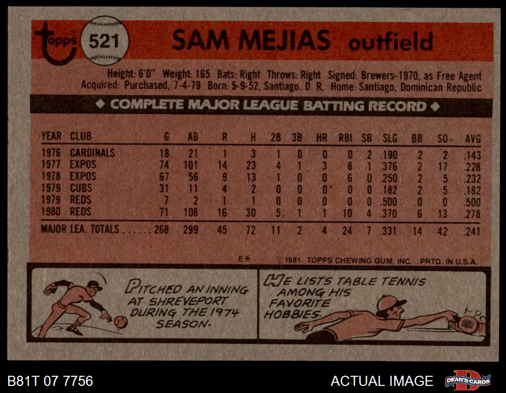 1981 Topps #521 Sam Mejias 6 - EX/MT