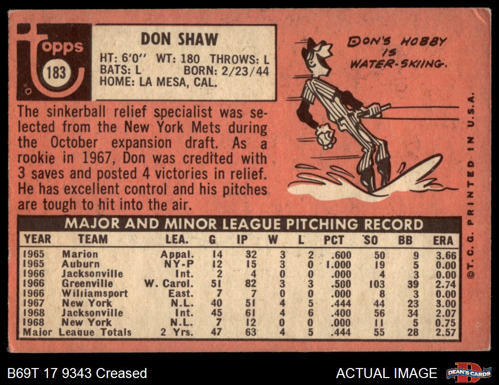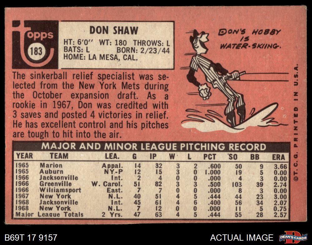 1969 Topps #183 Don Shaw 2 - GOOD