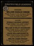 1973 Topps #517 EAR  -  Bill Virdon / Don Leppert / Bill Mazeroski / Dave Ricketts / Mel Wright Pirates Leaders Front Thumbnail