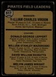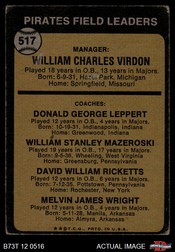 1973 Topps #517 EAR - Bill Virdon / Don Leppert / Bill Mazeroski / Dave Ricketts / Mel Wright Pirates Leaders 1.5 - FAIR