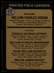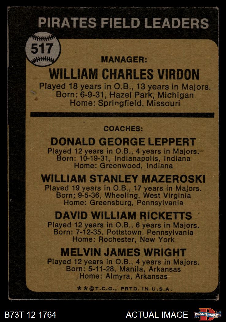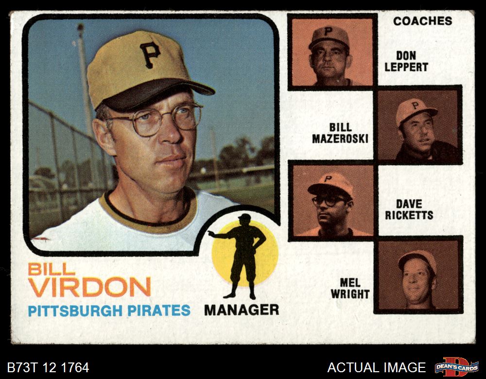 1973 Topps #517 EAR - Bill Virdon / Don Leppert / Bill Mazeroski / Dave Ricketts / Mel Wright Pirates Leaders 3 - VG