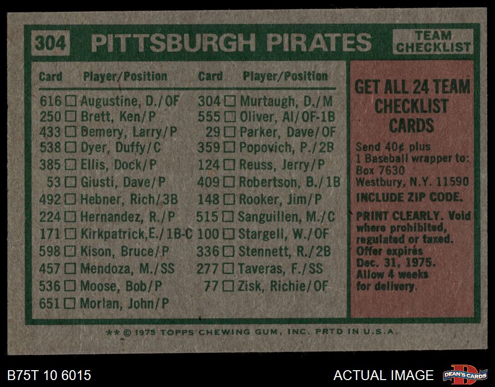 1975 Topps #304 - Danny Murtaugh Pirates Team Checklist 6.5 - EX/MT+
