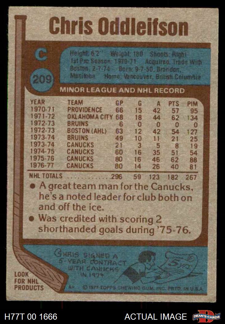 1977 Topps #209 Chris Oddleifson 3 - VG