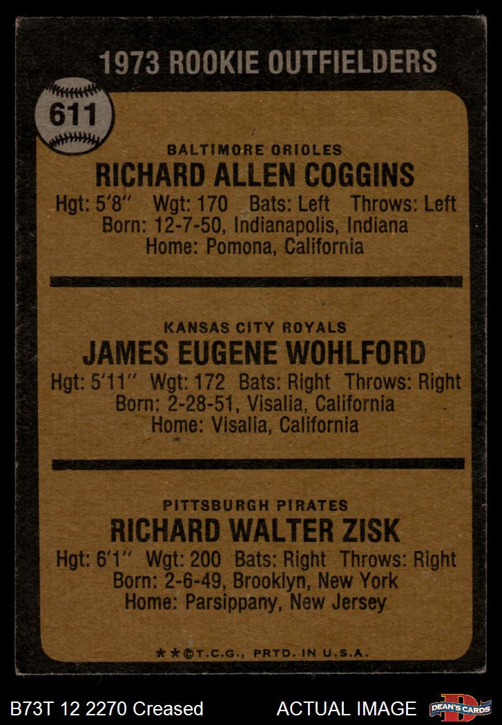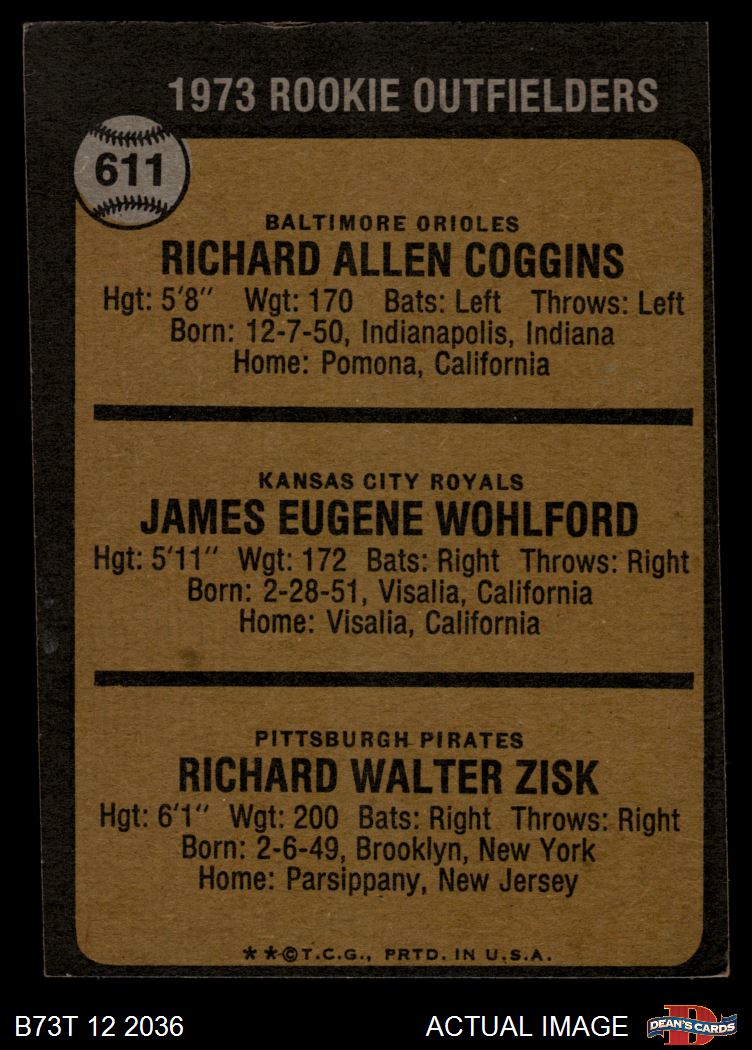 1973 Topps #611 - Richie Zisk / Rich Coggins / Jim Wohlford Rookie Outfielders 2 - GOOD