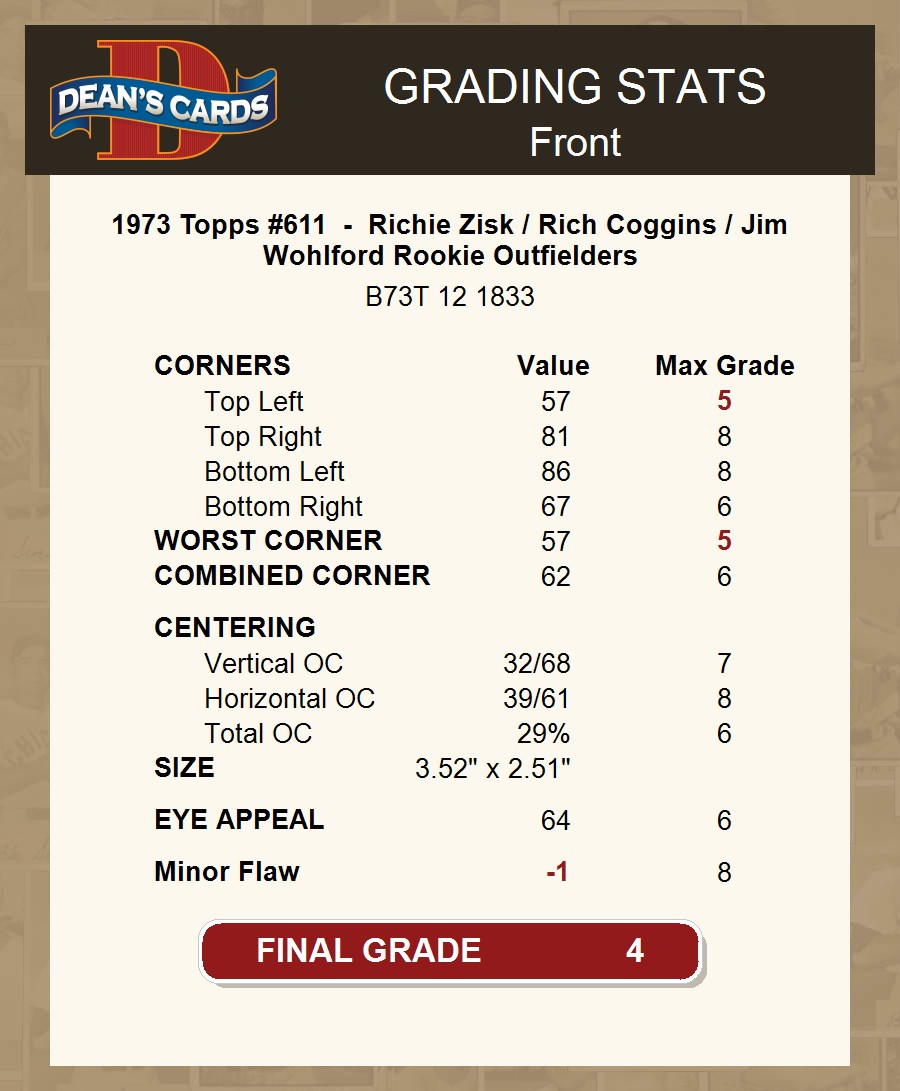 1973 Topps #611 - Richie Zisk / Rich Coggins / Jim Wohlford Rookie Outfielders 4 - VG/EX