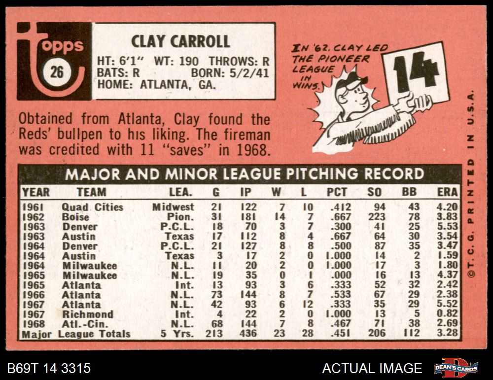 1969 Topps #26 Clay Carroll 7.5 - NM+