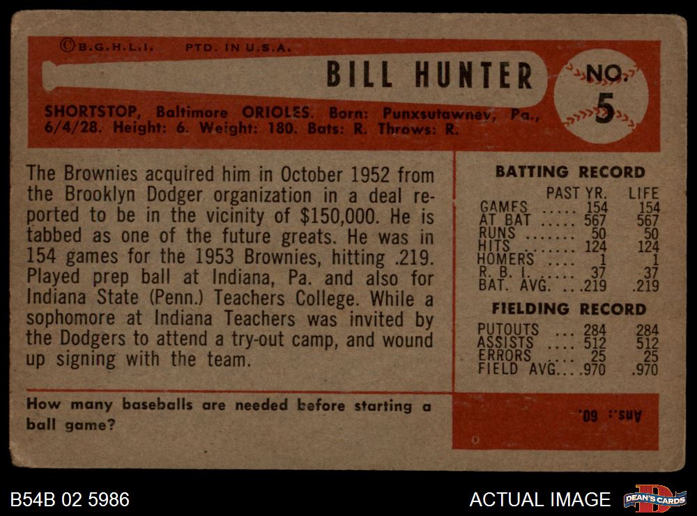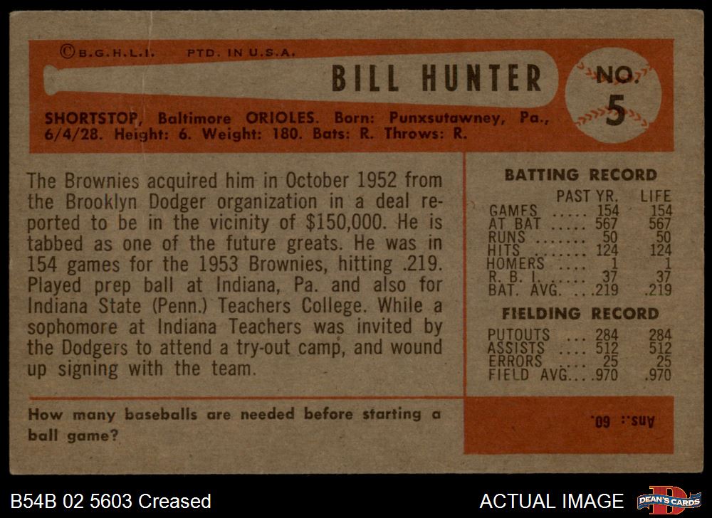 1954 Bowman #5 Billy Hunter 2 - GOOD
