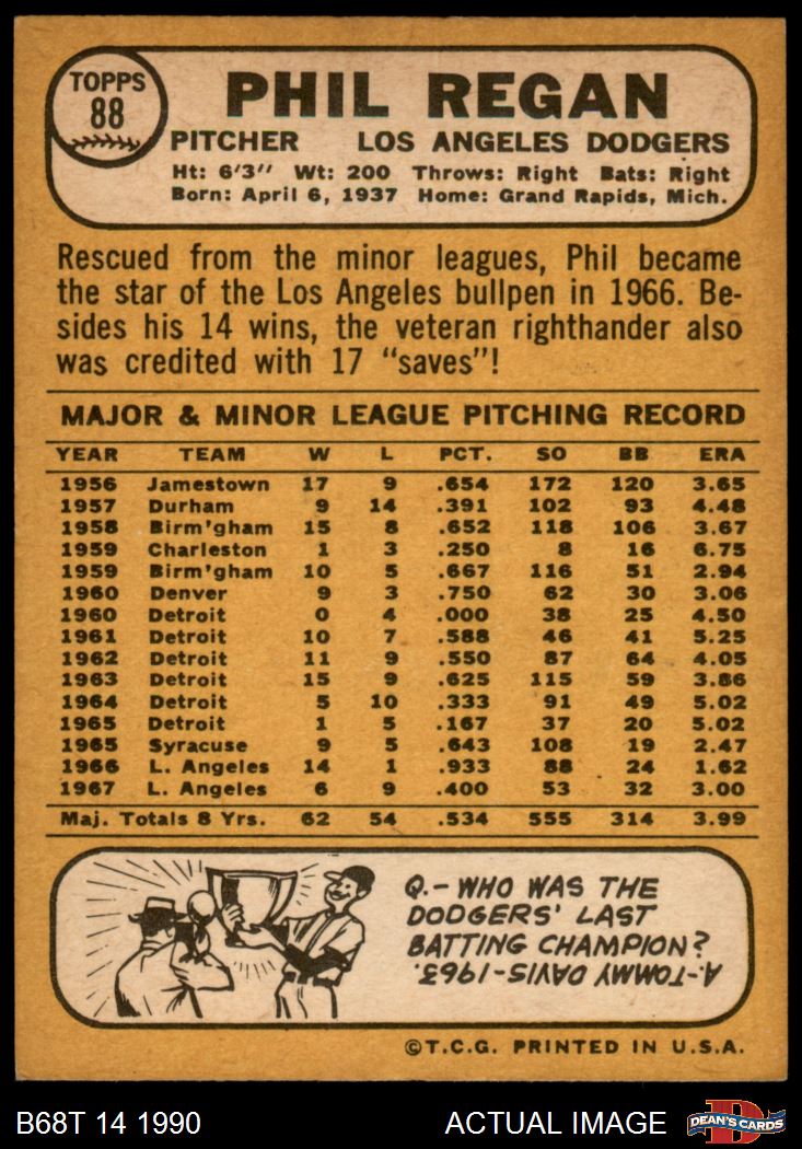1968 Topps #88 Phil Regan 7 - NM