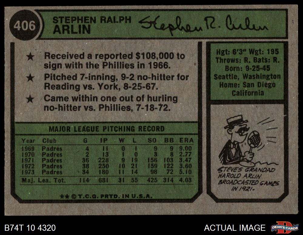 1974 Topps #406 Steve Arlin 3 - VG