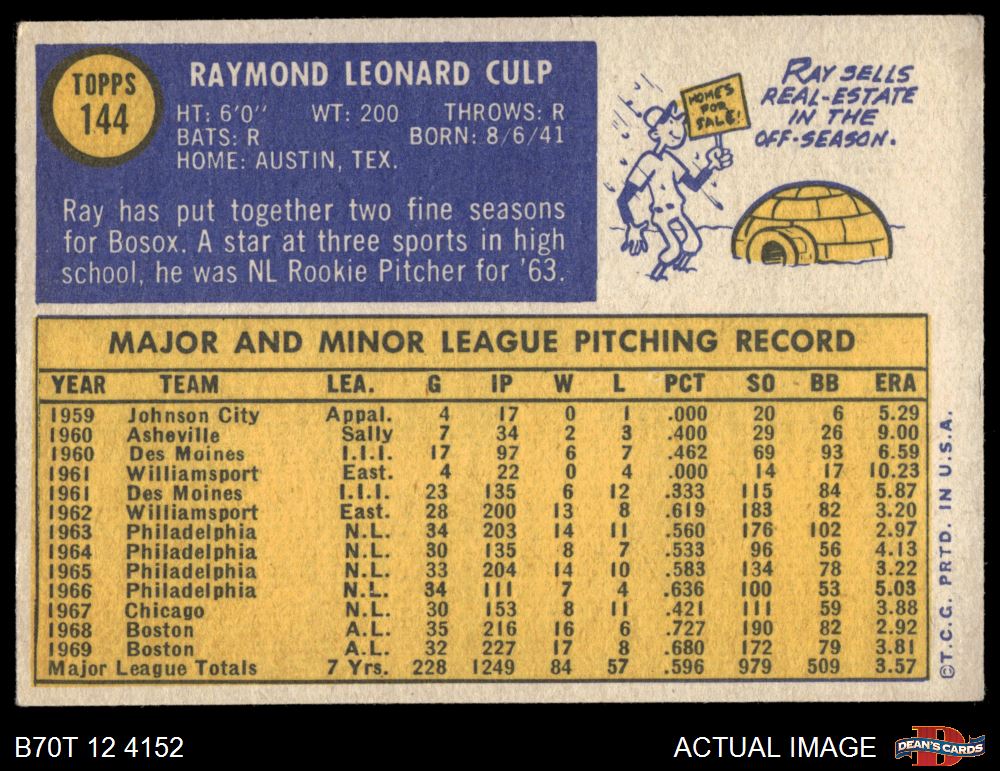 1970 Topps #144 Ray Culp 5 - EX