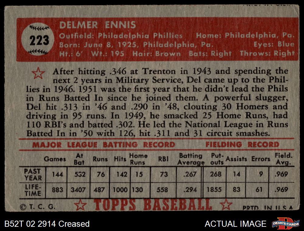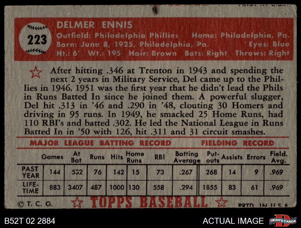 1952 Topps #223 Del Ennis 2 - GOOD