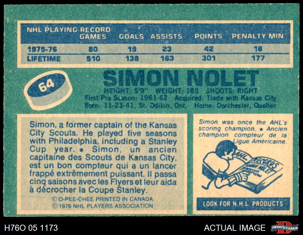 1976 O-Pee-Chee NHL #64 Simon Nolet
