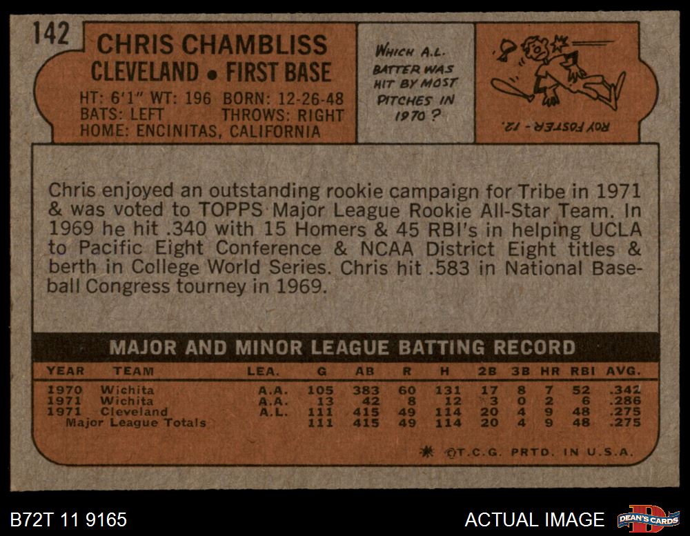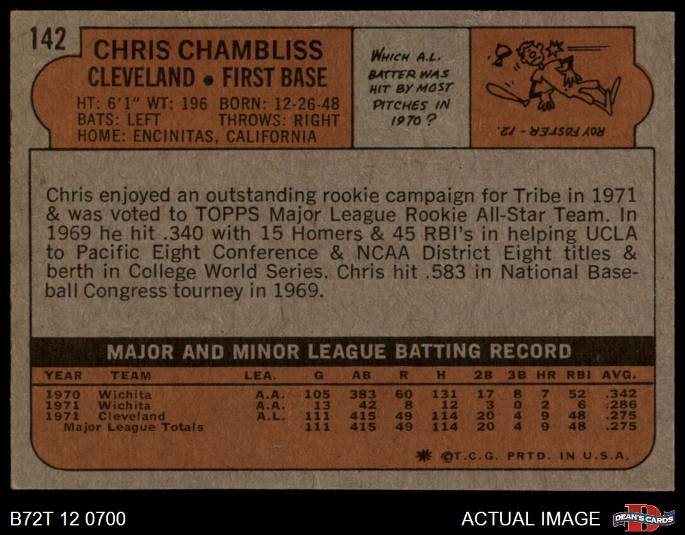 1972 Topps #142 Chris Chambliss 5 - EX