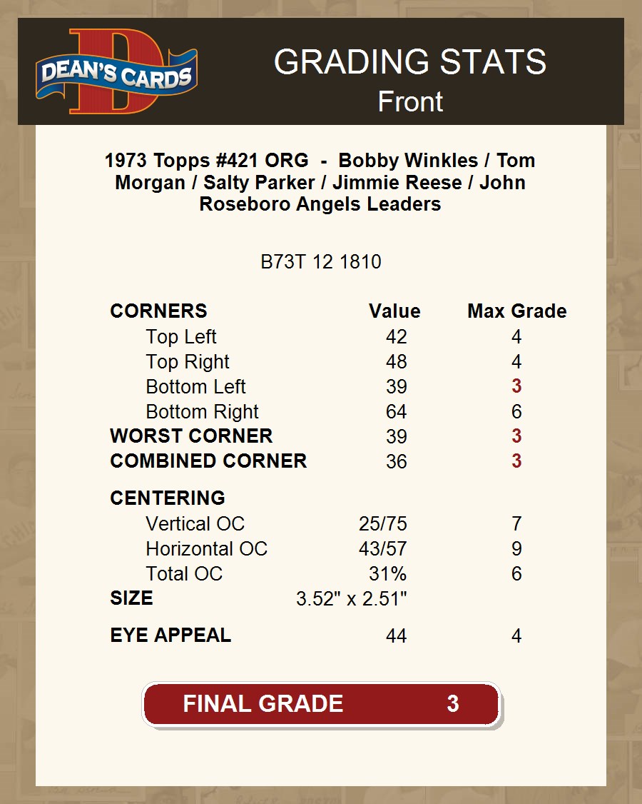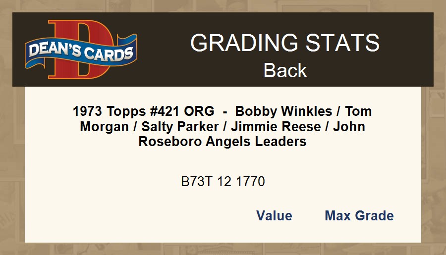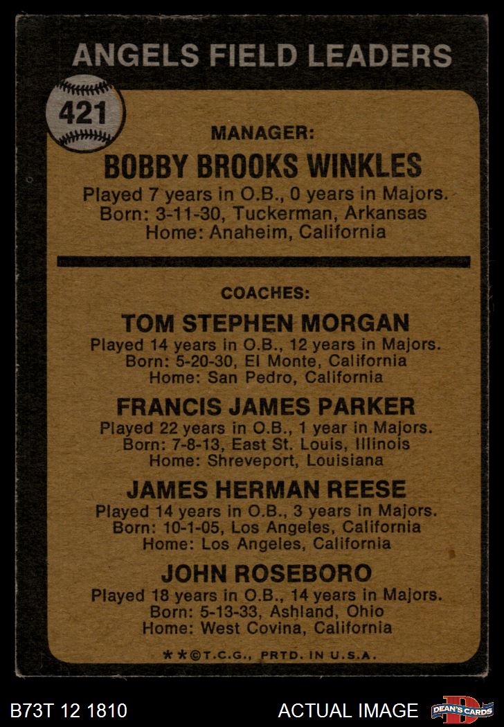 1973 Topps #421 ORG - Bobby Winkles / Tom Morgan / Salty Parker / Jimmie Reese / John Roseboro Angels Leaders 3 - VG