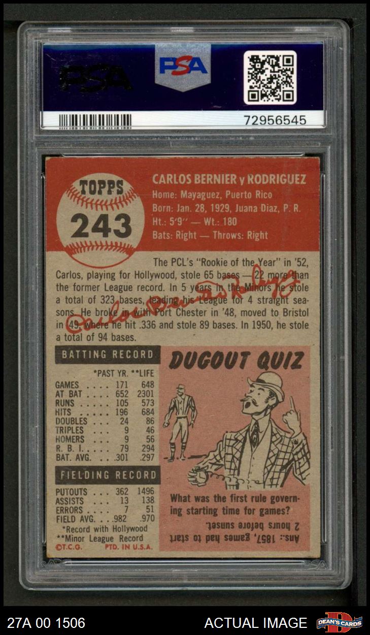 1953 Topps #243 Carlos Bernier PSA 4 - VG/EX