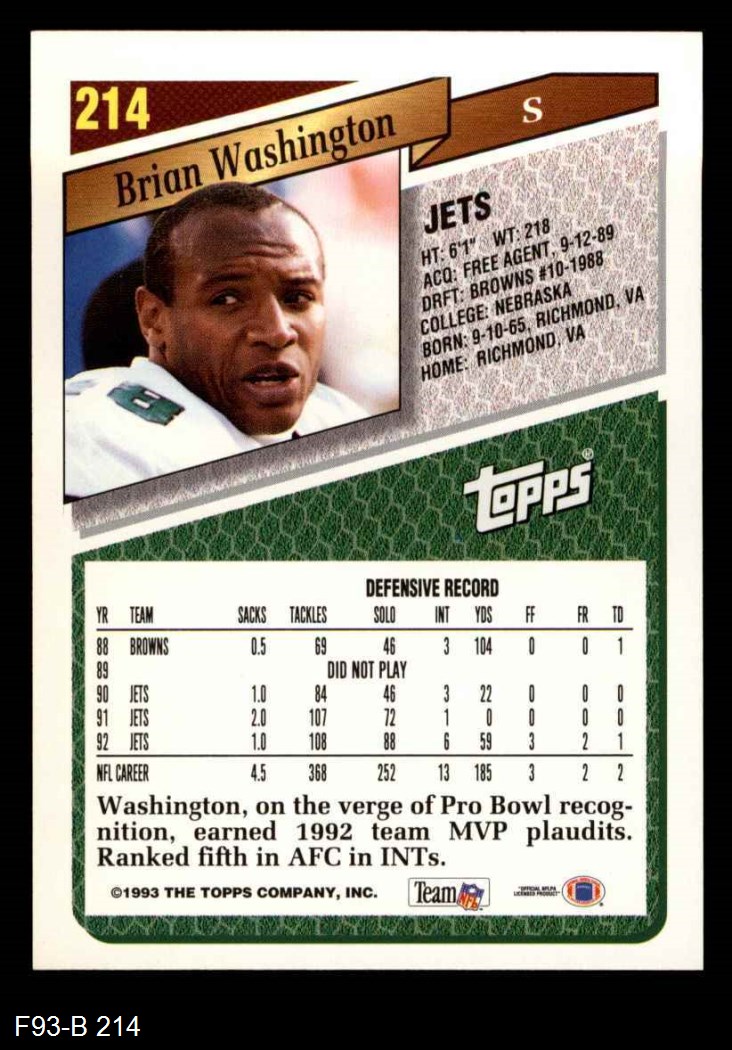 1993 Topps #214 Brian Washington