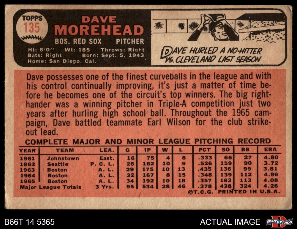 1966 Topps #135 Dave Morehead 1.5 - FAIR