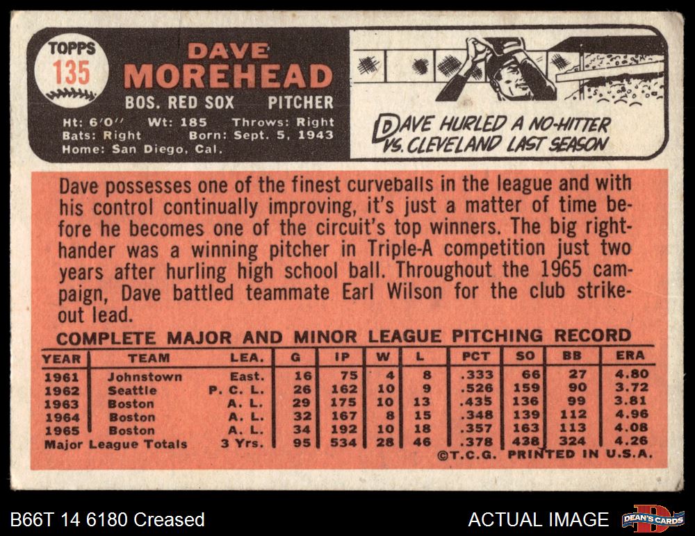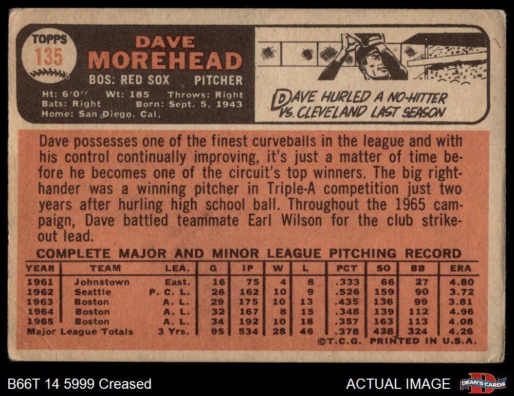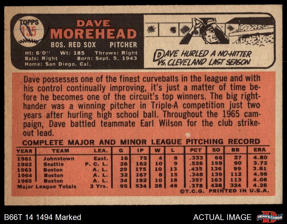 1966 Topps #135 Dave Morehead
