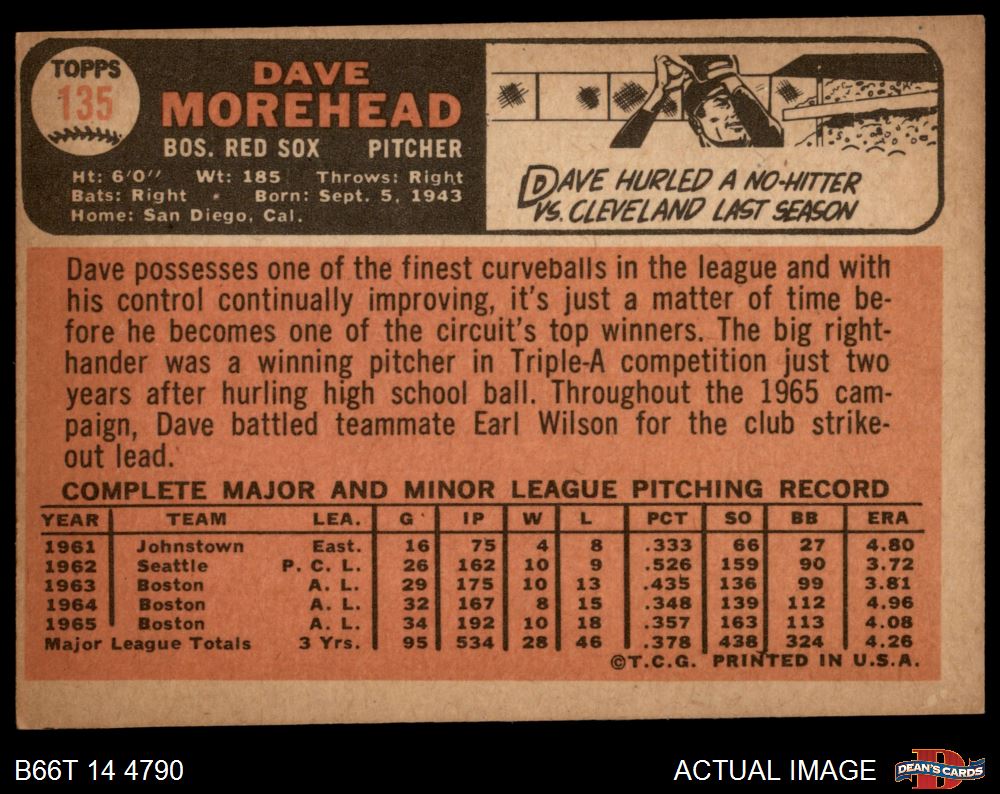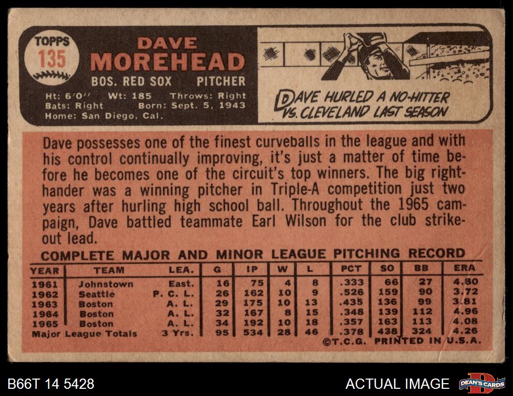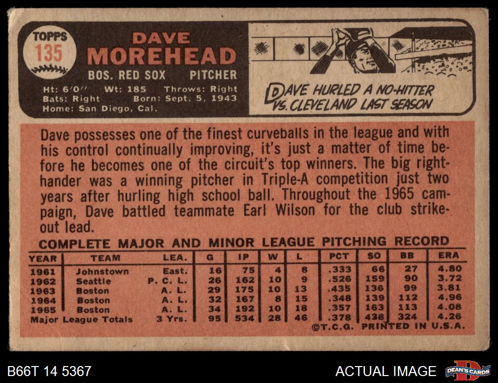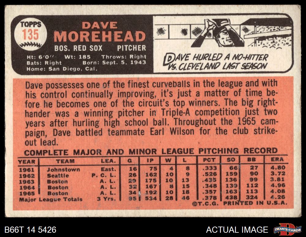 1966 Topps #135 Dave Morehead 2 - GOOD