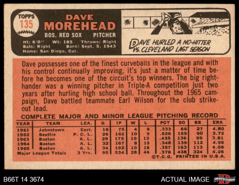 1966 Topps #135 Dave Morehead 4 - VG/EX