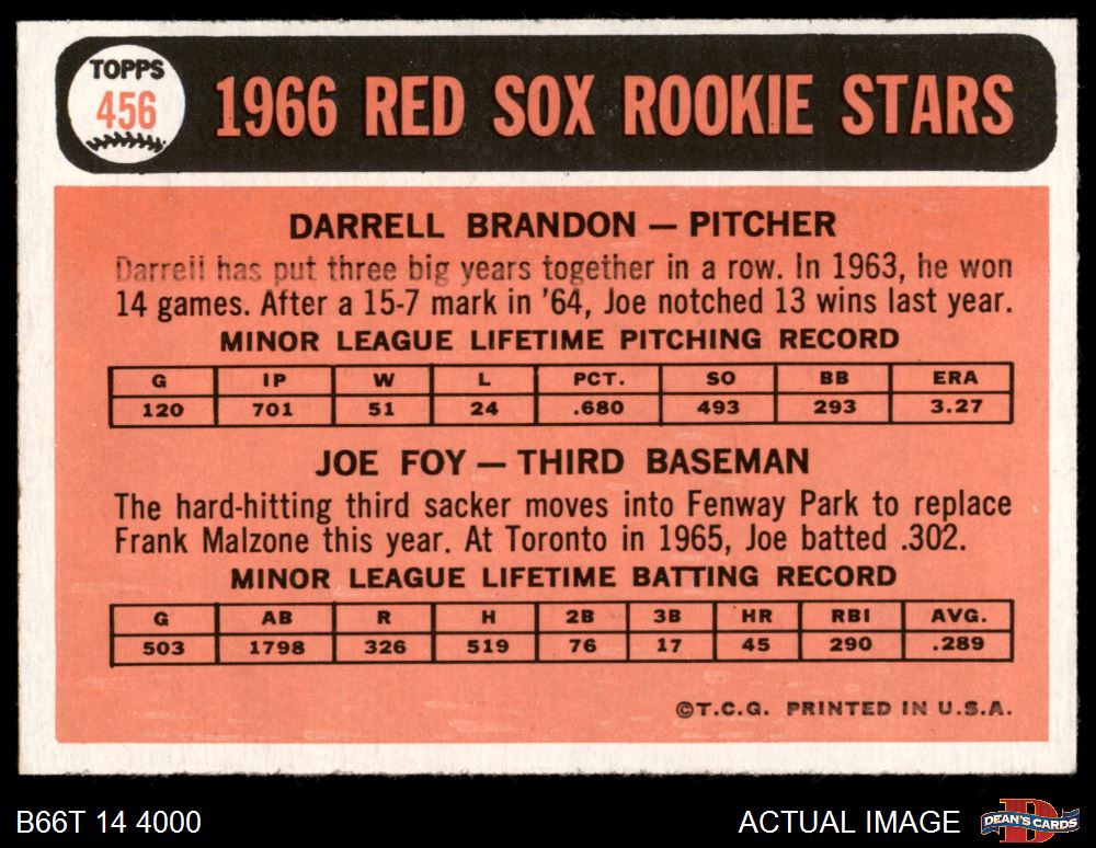 1966 Topps #456 - Joe Foy / Darrell Brandon Red Sox Rookies 6 - EX/MT