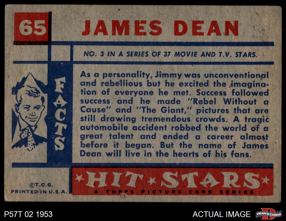 1957 Topps Hit Stars #65 James Dean 2 - GOOD