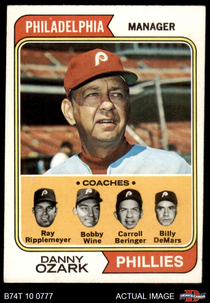 1974 Topps #119 - Danny Ozark / Carroll Beringer / Bill DeMars / Ray Ripplemeyer / Bobby Wine Phillies Leaders 5 - EX