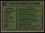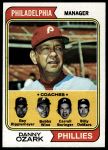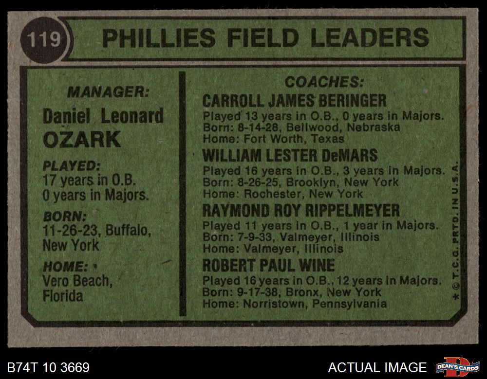 1974 Topps #119 - Danny Ozark / Carroll Beringer / Bill DeMars / Ray Ripplemeyer / Bobby Wine Phillies Leaders 6 - EX/MT