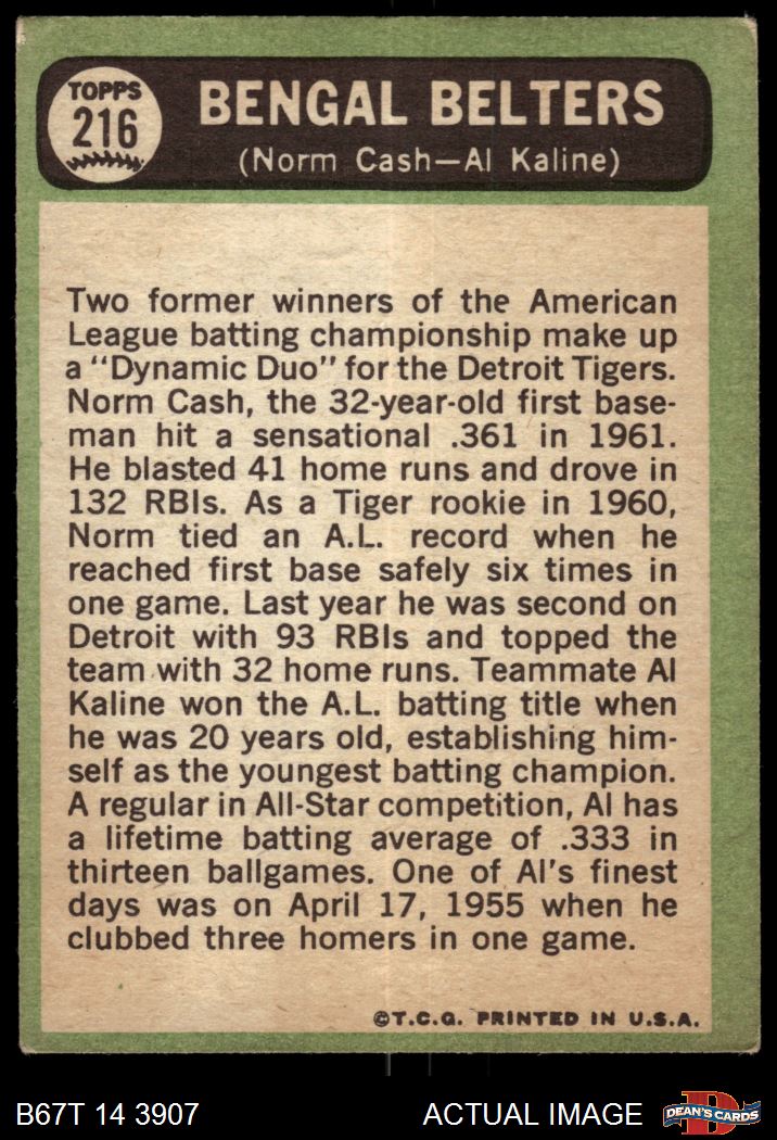 1967 Topps #216 - Al Kaline / Norm Cash Bengal Belters 4 - VG/EX