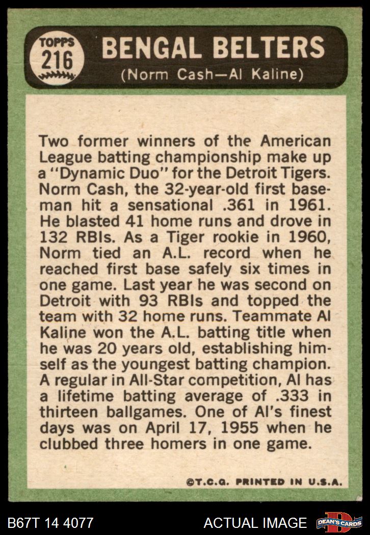 1967 Topps #216 - Al Kaline / Norm Cash Bengal Belters 5 - EX