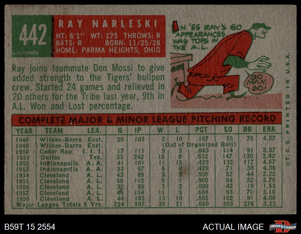 1959 Topps #442 Ray Narleski Front Thumbnail