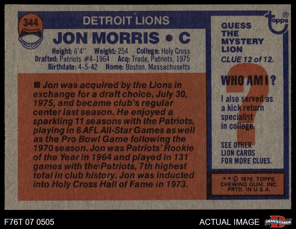 1976 Topps #344 Jon Morris 8 - NM/MT
