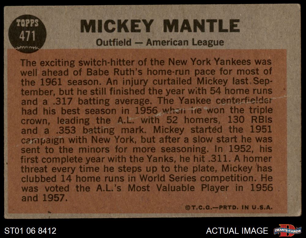 1962 Topps #471 - Mickey Mantle All-Star 1.5 - FAIR