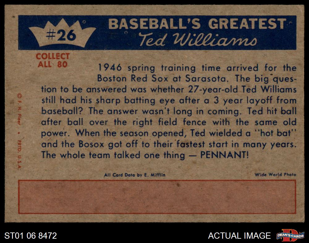 1959 Fleer Ted Williams (210 available)1959 Fleer Red Sox (276 available)