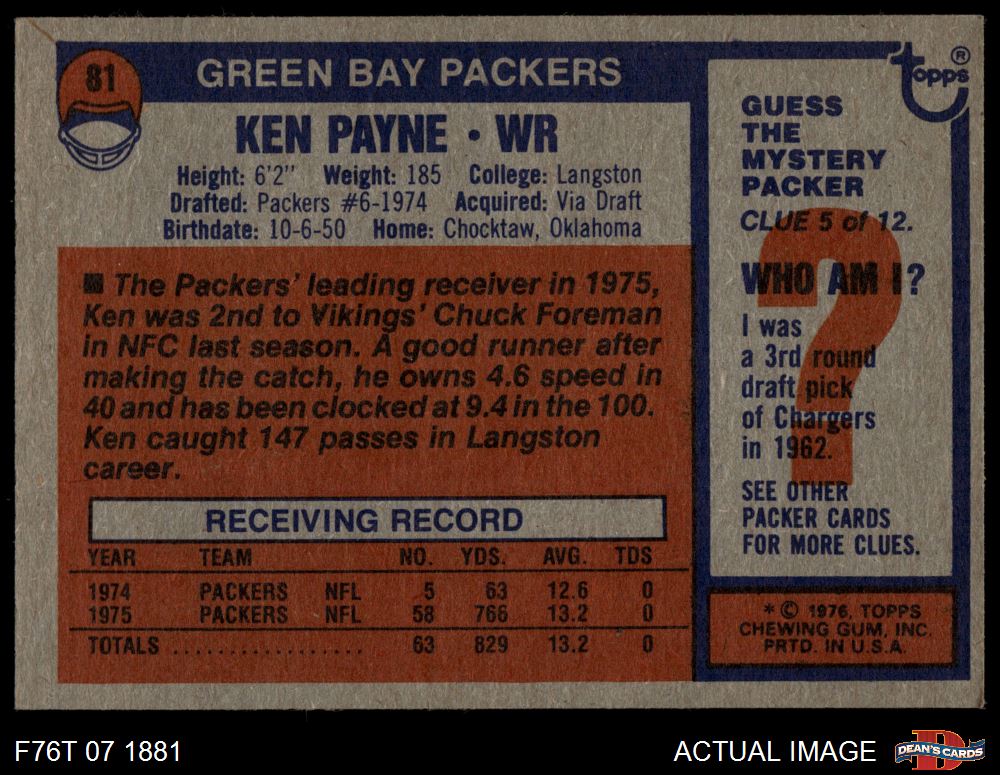 1976 Topps #81 Ken Payne 6 - EX/MT