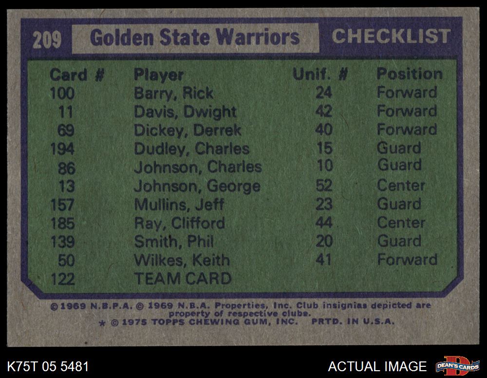 1975 Topps #209 Golden State Warriors 7 - NM