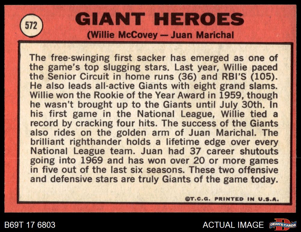 1969 Topps #572 - Juan Marichal / Willie McCovey Giants Heroes 4 - VG/EX