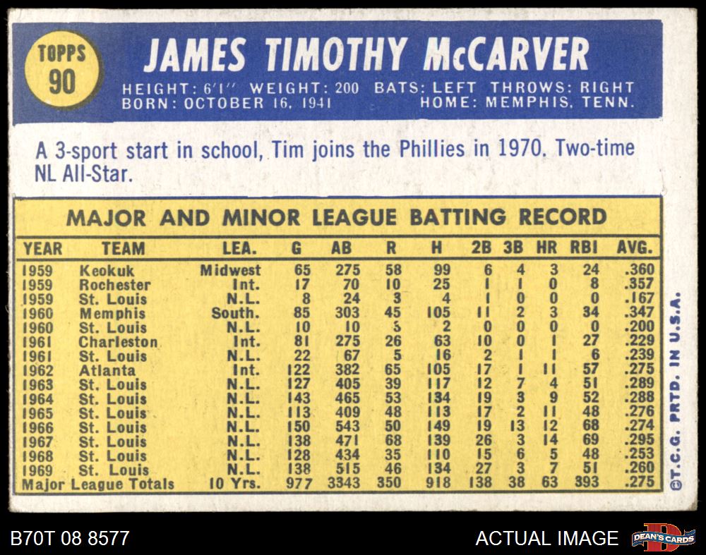 1970 Topps #90 Tim McCarver AUTOGRAPHED